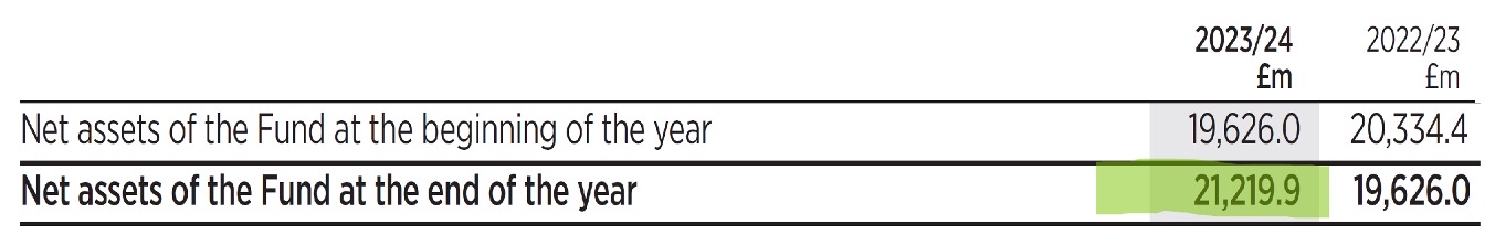 It stated on page 76 that the assets of the fund were £21,219.9 million:
