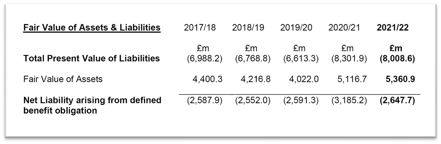 Birmingham has a share of about 27% of the pension fund, and so each year must report its share of the liabilities and assets In its annual accounts.