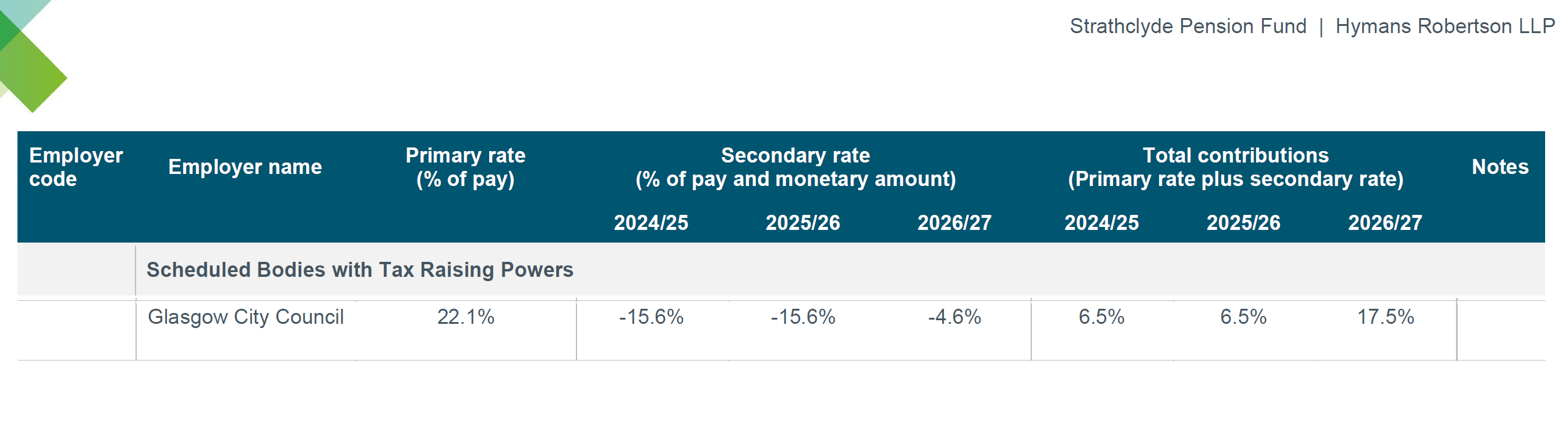Consequently Glasgow is paying just 6 ½ % of its employer's contributions for this and again next year!